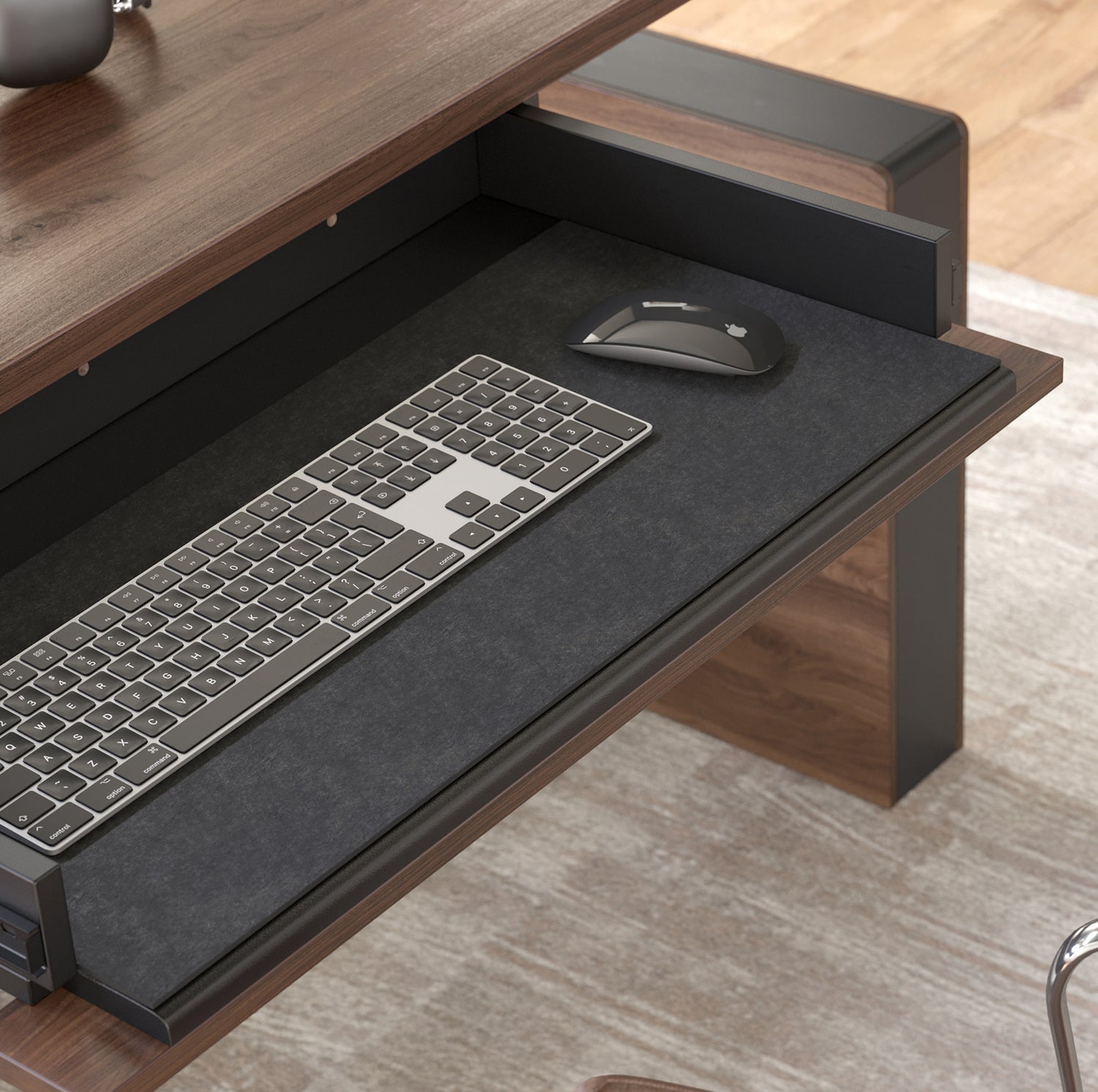 What I really like about thsi desk is how clean and premium it looks. The finish has a nice texture to it, and it holds up well under different lighting.
