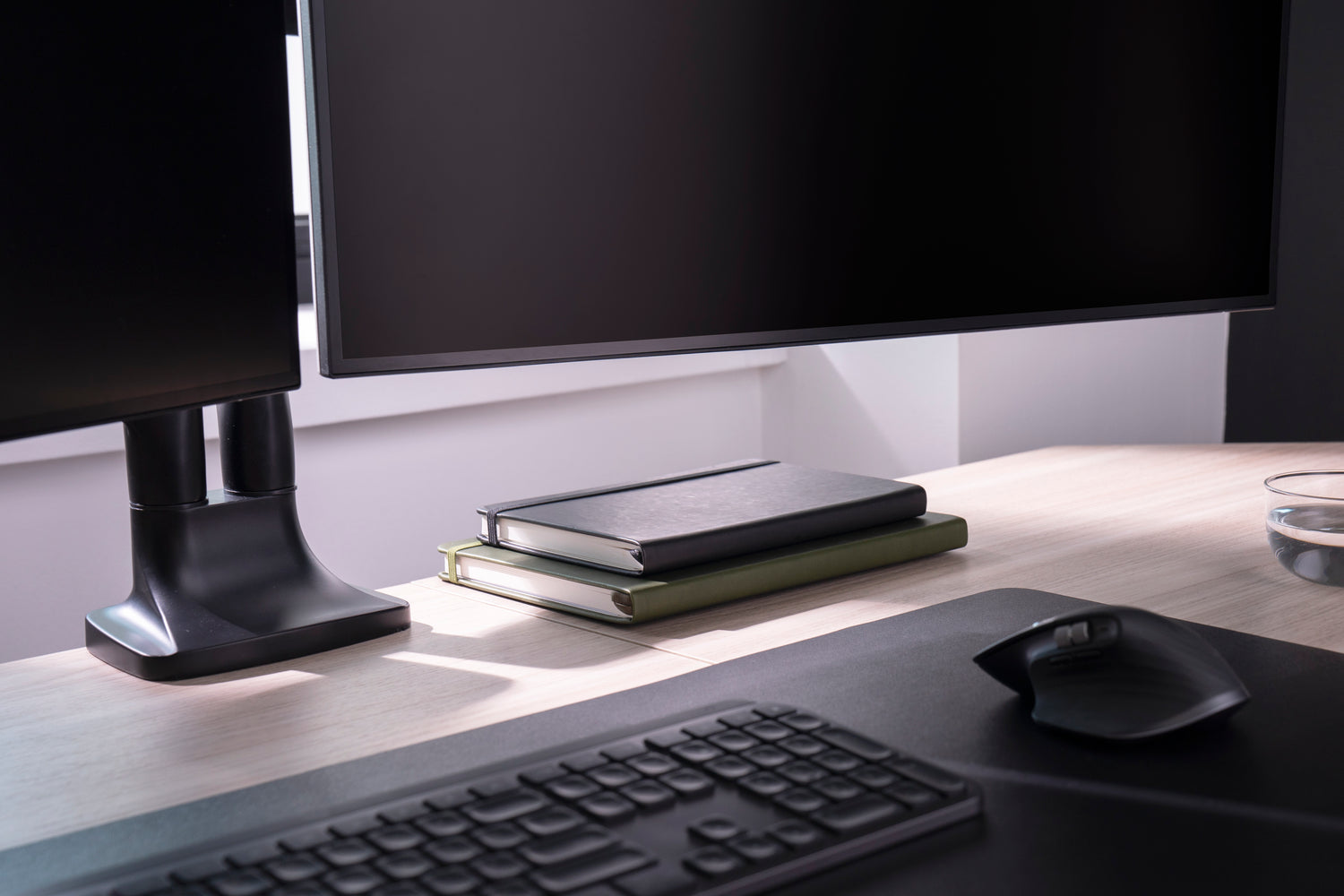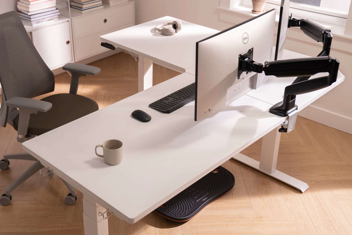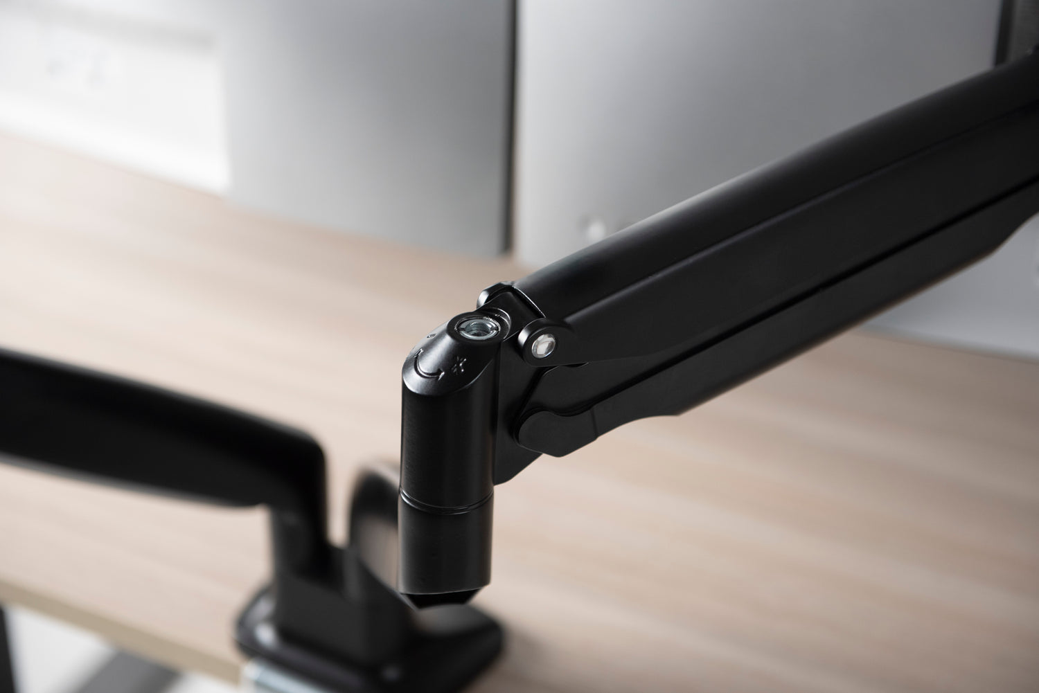 In the modern home office where it is common to work with multiple monitors, a double arm stand can help you work more efficiently. With a load capacity of 19.8 lbs each, the double arm stand can easily support two 32" monitors without wobbling, allowing you to work efficiently.