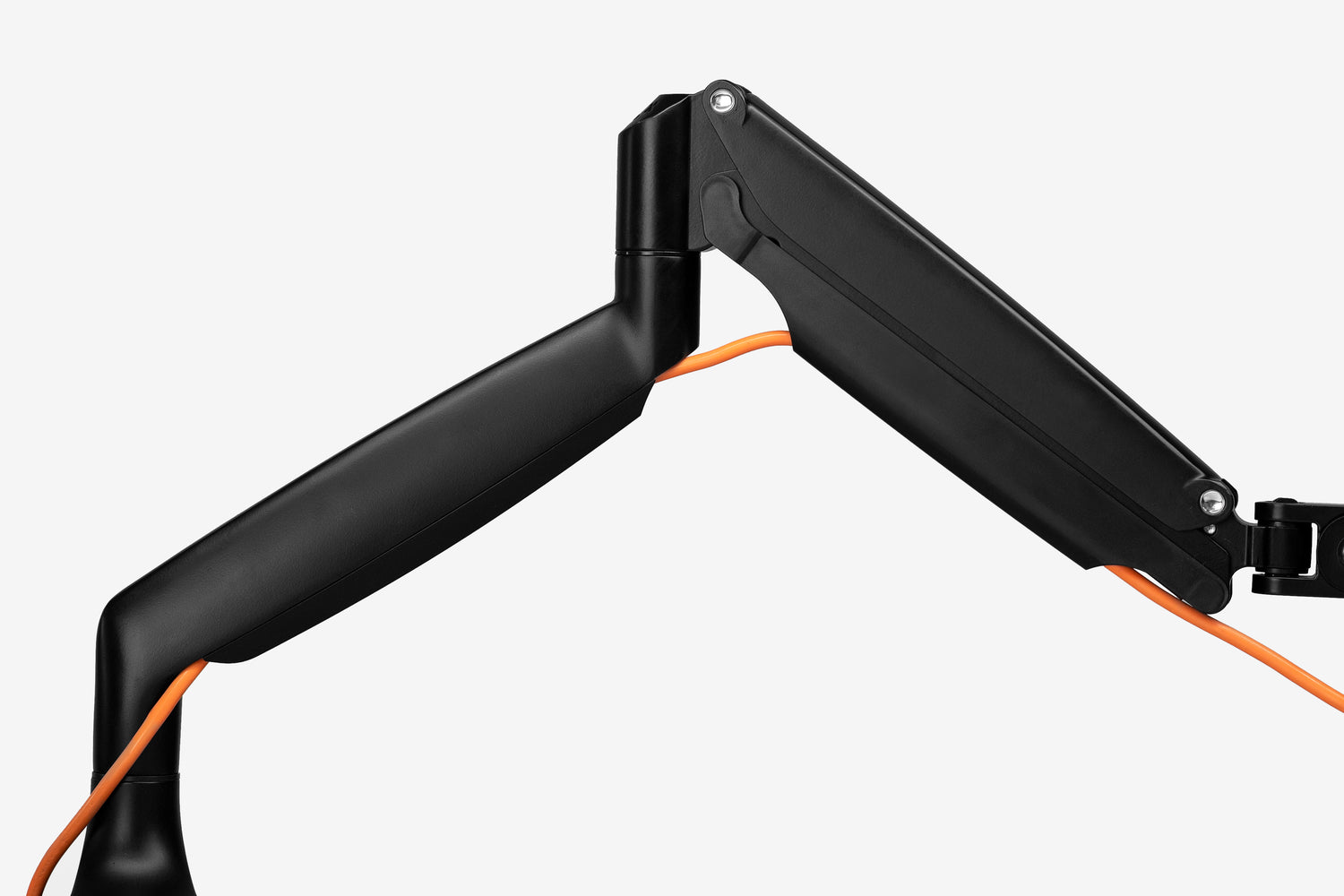 The cable management tube integrated into the stand provides effective storage for monitor cables and prevents the desk from becoming cluttered when moving the monitor.