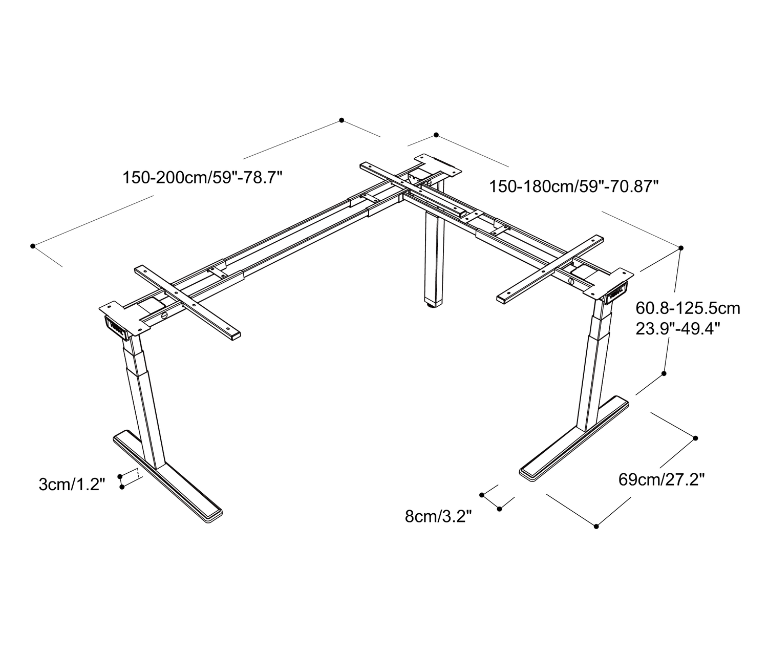 - Height Range (without desktop): 60.8 -125.5cm