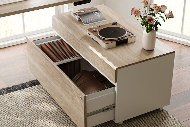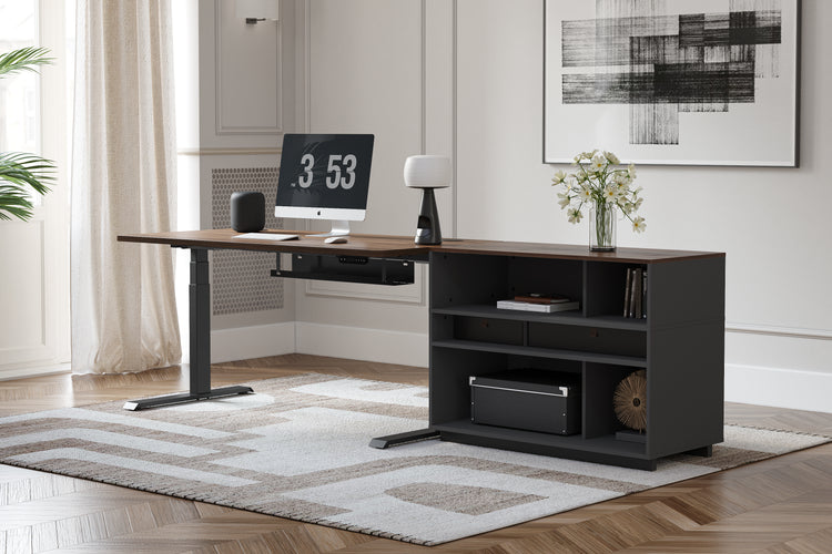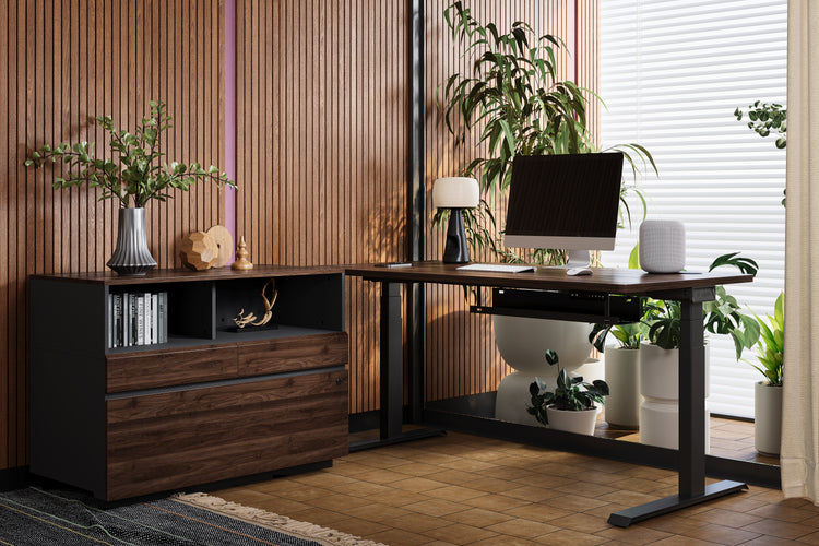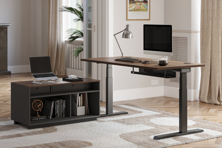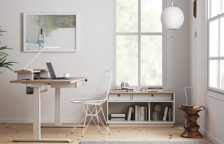 Available in two color options to match your standing desk. Designed to seamlessly adjust to the appropriate height, creating a cohesive workspace.