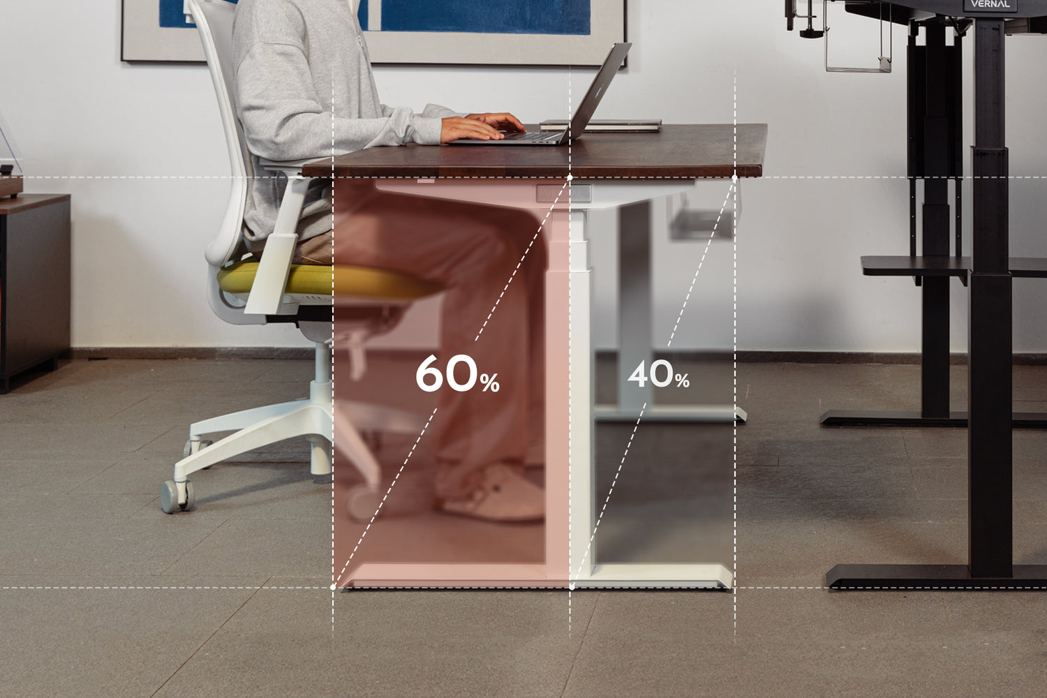 Comfort isn’t just about your back, but also about your legs, your focus, and your freedom. Traditional desk legs box you in. Our open C-frame gives more knee clearance for cross-legged sitting, stretching, or rolling chairs, so you can shift freely without interrupting your flow.