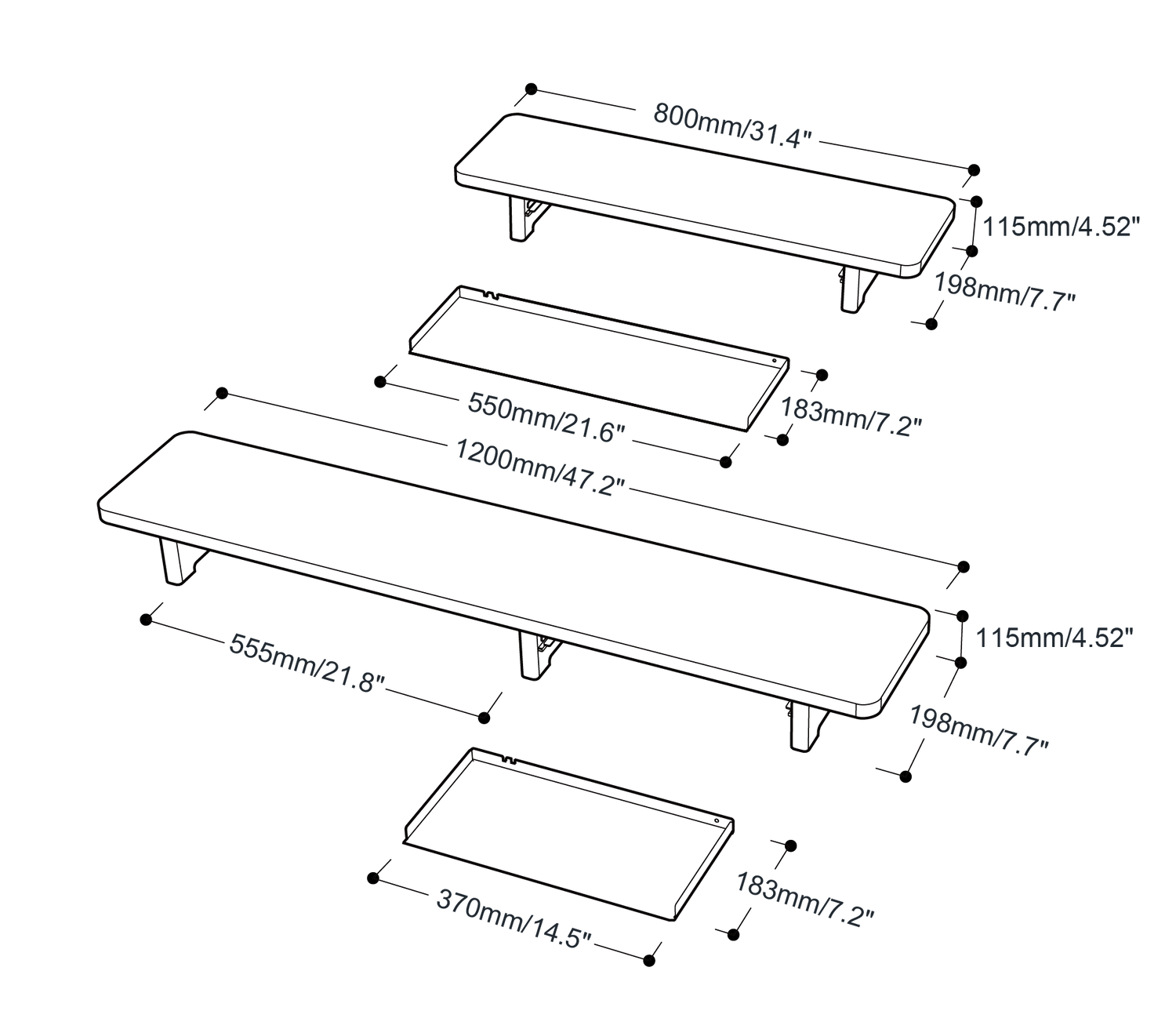 80cm: 80cm x 19.8cm x 11.5cm