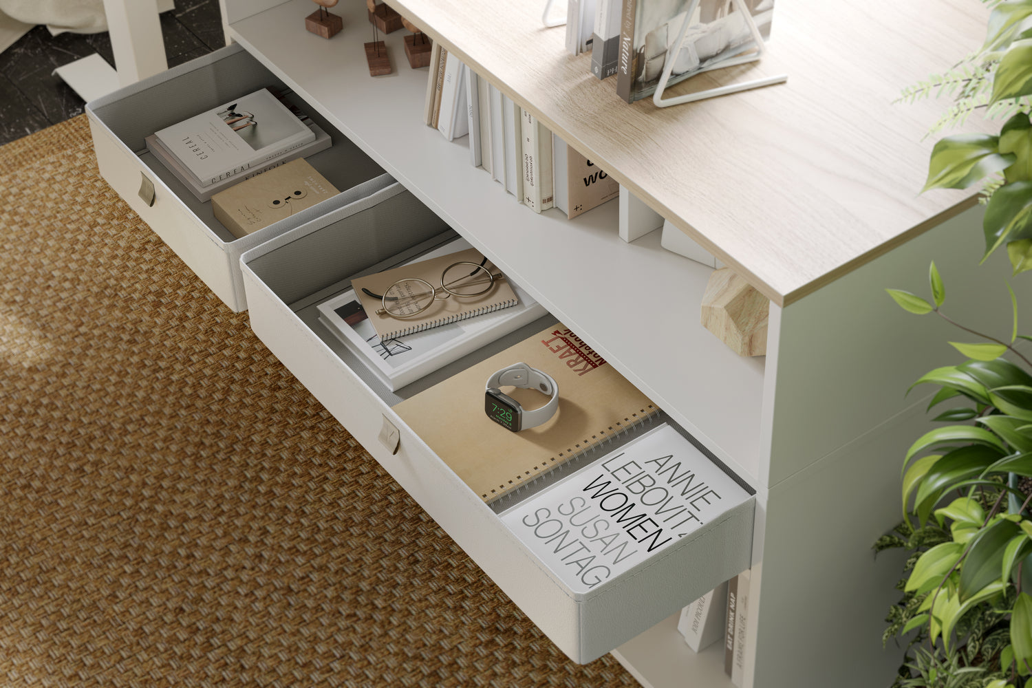 Sliding file folder rails allow flexible placement for different file sizes.Conveniently store and access your files.